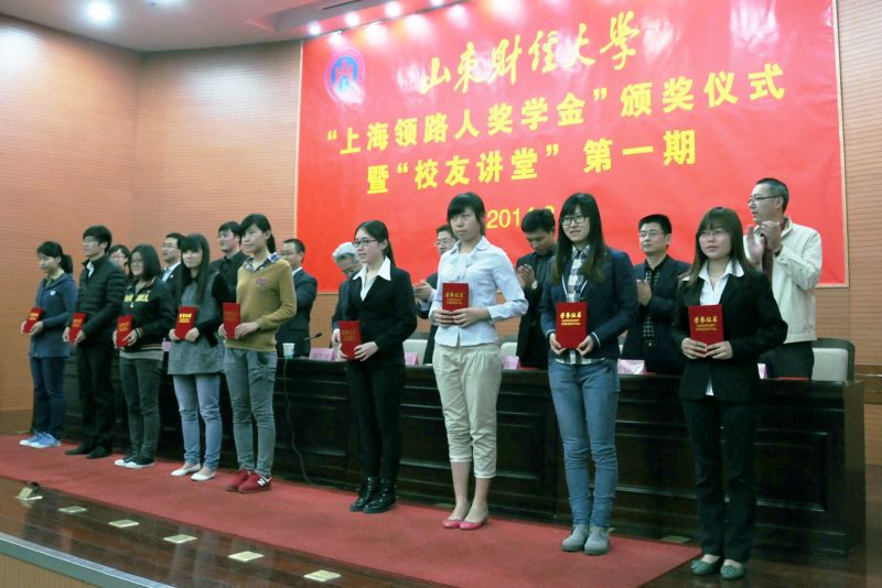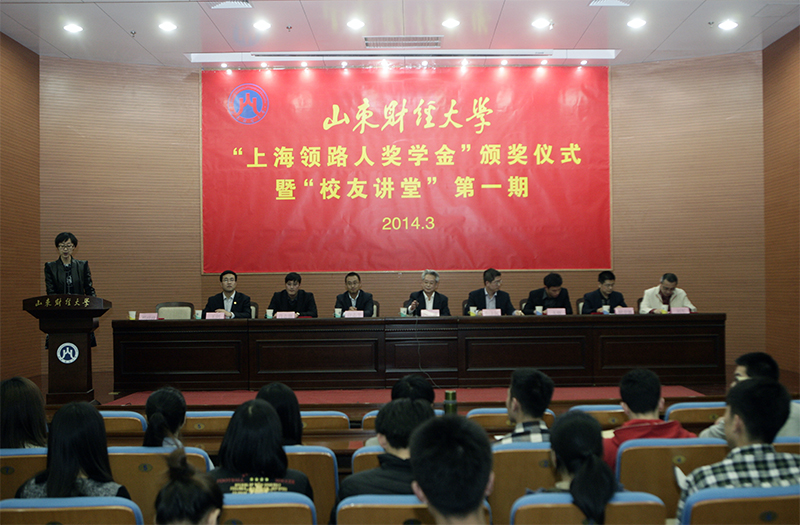校友办公室主任、教育基金会秘书长耿金波介绍了领路人奖学金的设立过程,学生处处长王剑宣读了获奖学生名单,工商管理学院学生葛松松作为获2013年度领路人奖学金代表发言。