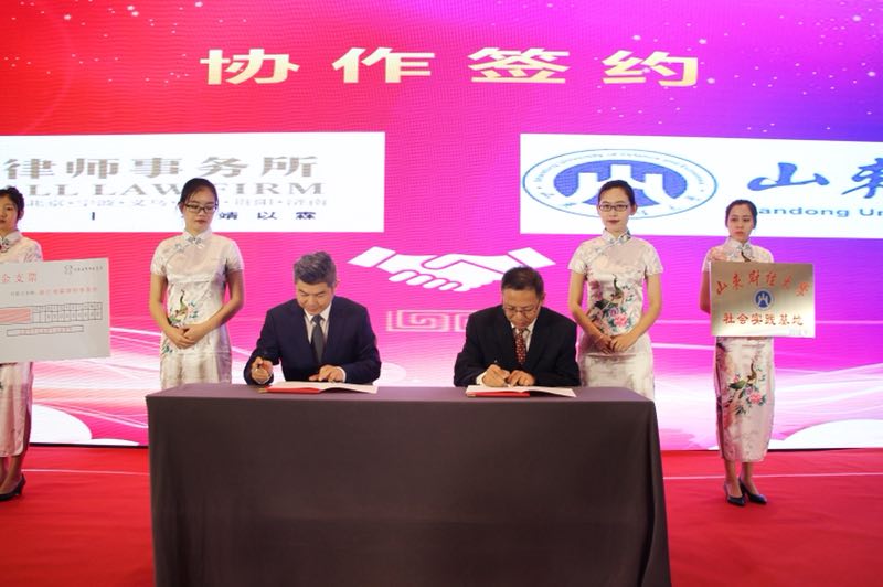 9月16日,我校法学院与浙江靖霖律师事务所全面合作协议签署仪式在济南举行,浙江靖霖律师事务所济南所同时成立。法学院党委书记邵文涛教授、院长赵信会教授、合作发展处处长刘奇耀等出席了签约仪式。